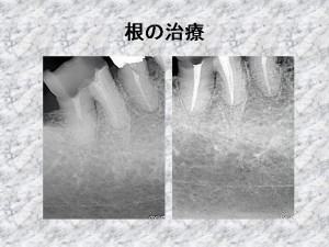 レントゲンでは左下の歯根膜腔の拡大がなくなりました。