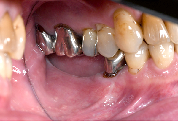 抜歯後、骨吸収が顕著にみられ、審美障害を起こしている。